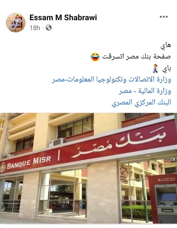 تداول عدد من مستخدمي منصات التواصل الاجتماعي بالساعات القليلة الماضية، أقاويل حول تعرض الصفحة الرسمية لـ بنك مصر على موقع التواصل الاجتماعي “فيسبوك” للسرقة والاختراق، مما أثار حالة من القلق لدى عملاء البنك.