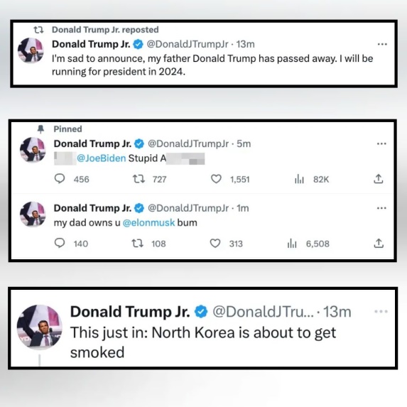 بعد البحث والتحقق، تبين أن حساب نجل دونالد ترامب على موقع X قد تعرض للاختراق، حيث نشر قراصنة مجهولون تدوينات مزيفة عن وفاة الرئيس الأمريكي السابق، كما أعلنوا أيضًا عن نية “ترامب الابن” الترشح لرئاسة الولايات المتحدة في عام 2024، بحسب شبكة “سي إن إن” الأمريكية، وظل المنشور متواجدًا لمدة نصف ساعة، وتفاعل معه الأشخاص الذين لم يشككوا في صحته.