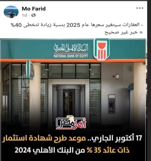 إشاعة: إصدار البنك الأهلي المصري شهادات جديدة بفائدة 35%