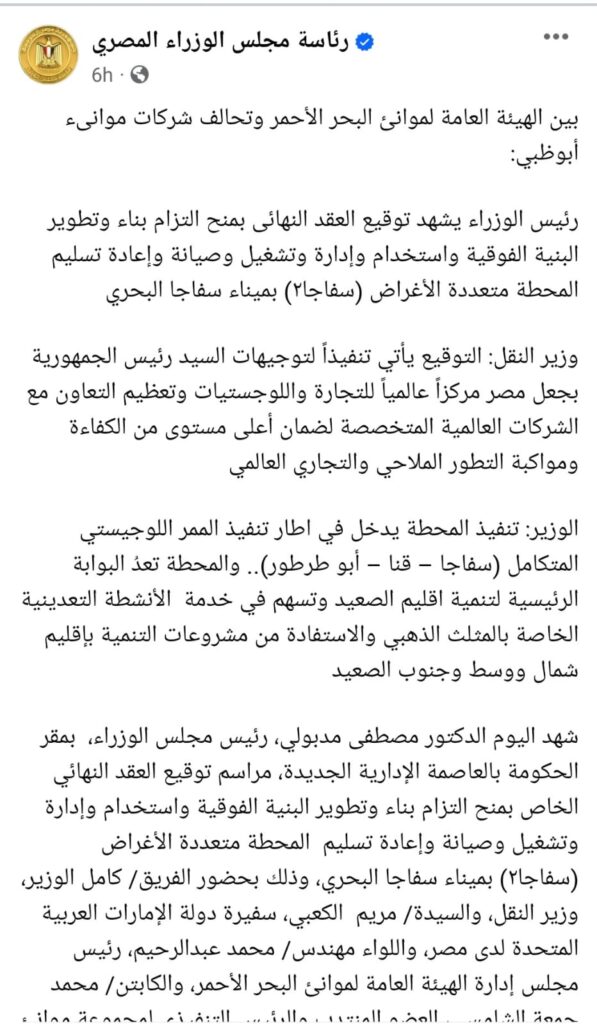 بالبحث والتحقق، تبين أن ما تم تداوله بشأن قيام مصر ببيع “ميناء سفاجا 2” للإمارات ليس له أي أساس من الصحة، وحقيقة الأمر تتمثل في أن مصر قد وقعت اتفاقية مع مجموعة موانئ أبوظبي لتشغيل وصيانة محطة “سفاجا 2” متعددة الأغراض بميناء سفاجا.