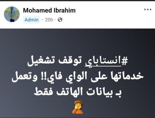 تداول عدد من رواد مواقع التواصل الاجتماعي في مصر بالساعات الماضية، أنباء بشأن تعطل تشغيل خدمات تطبيق “إنستاباي” عبر شبكات الإنترنت المتحرك WIFI؛ وقصرها على خدمة الإنترنت التي تقدمها شركات الاتصالات العاملة داخل مصر للهواتف المحمولة (باقات إنترنت الهواتف).