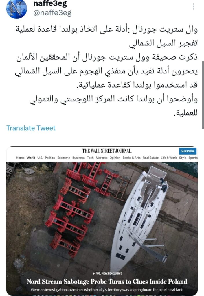 تداولت عدد من منصات التواصل الاجتماعي في الساعات الأخيرة، أنباء بشأن تورط بولندا في عملية تفجير خط أنابيب السيل الشمالي التي وقعت في سبتمبر 2022، وذلك على خلفية ما ذكرته صحيفة “وول ستريت جورنال” الأمريكية من أن هناك أدلة تفيد باستخدام بولندا كقاعدة لشن الهجمات السابقة على أنابيب السيل الشمالي.