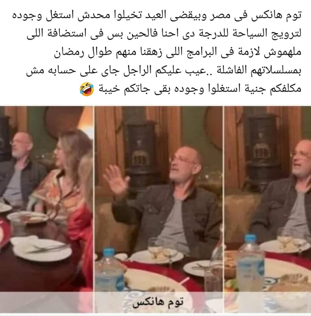 انتشرت أقاويل مؤخرًا بين رواد مواقع التواصل الاجتماعي عن تجاهل وزارة السياحة التام لزيارة النجم العالمي توم هانكس لمصر، وذلك عقب انتشار مقطع فيديو للنجم العالمي وزوجته ريتا ويلسون في أحد مطاعم حي الزمالك، مما أثار الجدل حول عدم استفادة الدولة من هذه الزيارة في الترويج للسياحة المصرية.