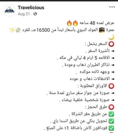 تداولت حسابات على وسائل التواصل الاجتماعي في مصر بالأيام الماضية، بعض الأخبار تفيد بأن عمرة المولد النبوي 2024 تبدأ من ١٦٥٠٠ ألف جنيه فقط، والتي من المقرر أن تبدأ من 6 سبتمبر الجاري، مما أثار تساؤلات حول صحة هذه الأخبار.