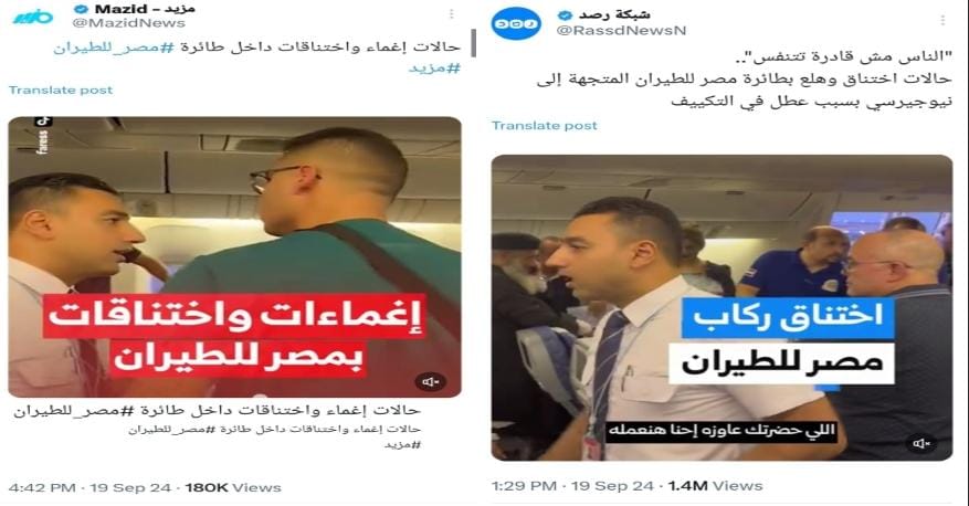 تداولت حسابات على وسائل التواصل الاجتماعي في الأيام القليلة الماضية، مقطع فيديو يظهر وجود حالات اختناق بين عدد من الركاب على متن طائرة تابعة لشركة مصر للطيران، وخلال رحلة متجهة من القاهرة إلى ولاية نيوجيرسي بالولايات المتحدة الأمريكية، وذلك بسبب عطل في نظام تكييف الطائرة، مما أثار بعض الجدل.