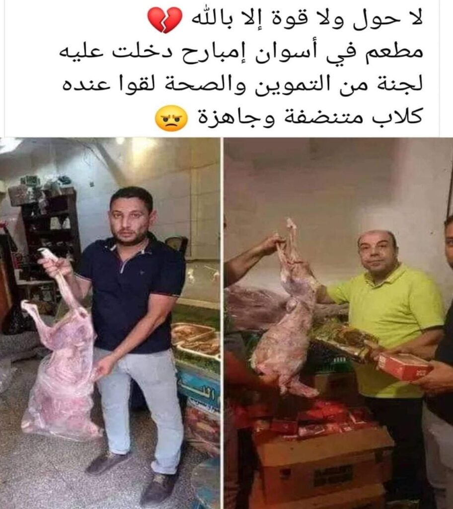 تداول عدد من رواد مواقع التواصل الاجتماعي في مصر مؤخرا، صورا تزعم ضبط لحوم كلاب بمطعم شهير في محافظة أسوان، مما أثار حالة من الجدل حول مدى صحة هذه الواقعة.