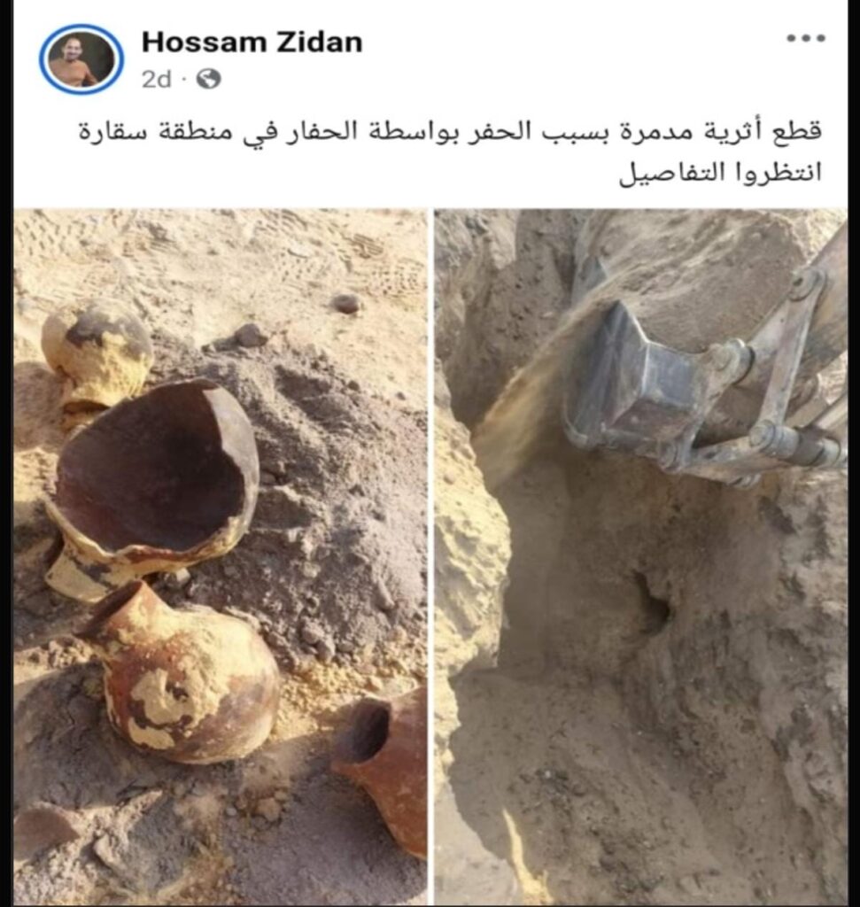 تداول عدد من رواد منصات التواصل الاجتماعي في مصر بالأيام القليلة الماضية، أنباء بشأن قيام حفار في منطقة سقارة بمحافظة الجيزة بتدمير قطع أثرية، مما أثار بعض الجدل واللغط.