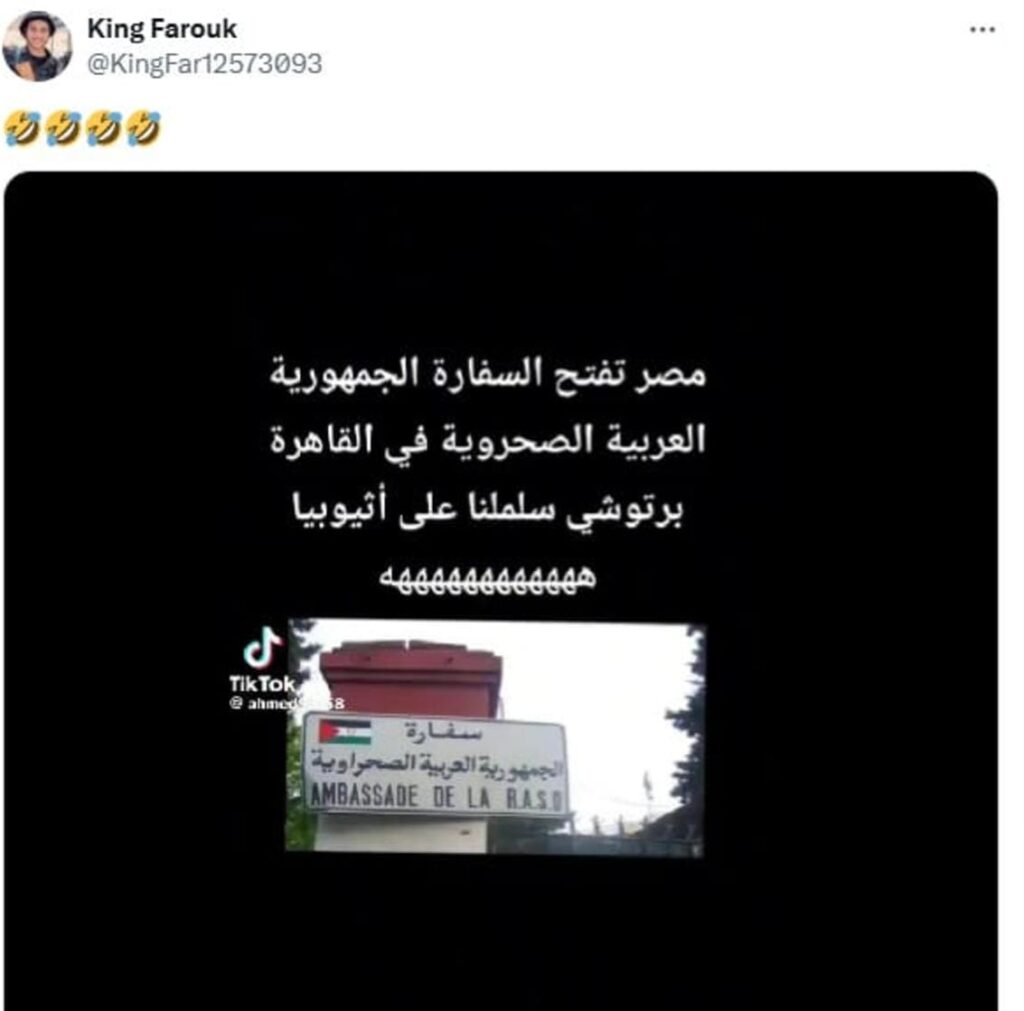 تداولت حسابات على وسائل التواصل الاجتماعي مؤخرا، صورة تزعم افتتاح سفارة للجمهورية العربية الصحراوية في القاهرة، وذلك بزعم اعتراف مصر بها كدولة، مما أثار التساؤلات حول مدى صحة هذه الصورة.